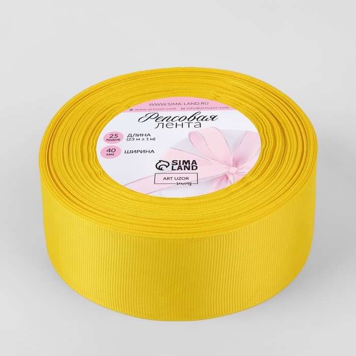 Лента репсовая, 40 мм, 23 ± 1 м, цвет жёлтый №15