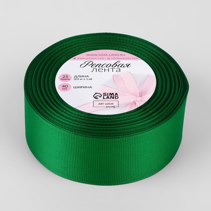 Лента репсовая, 40 мм, 23 ± 1 м, цвет зелёный №19