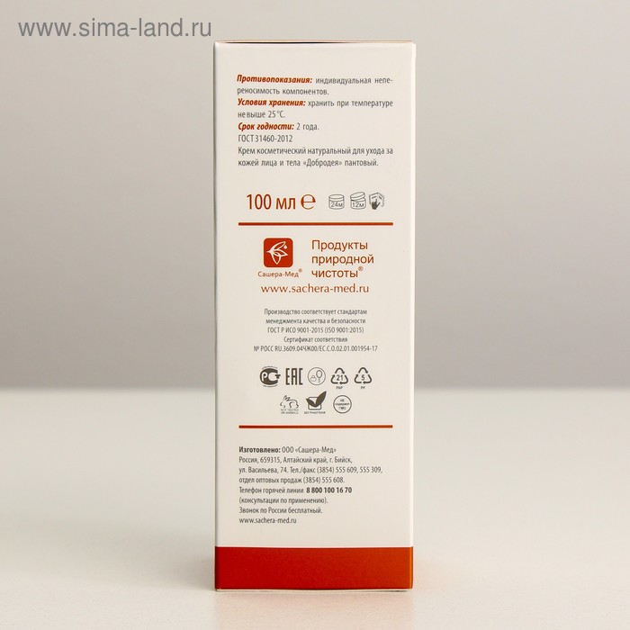 Органический натуральный крем "Добродея" пантовый в мицеллярной форме 100 мл