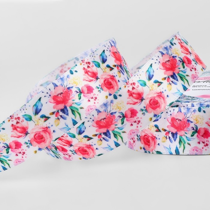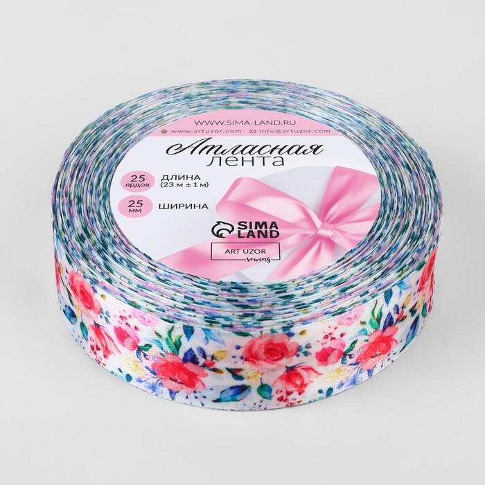 Лента атласная «Акварельные розы», 25 мм, 23 ± 1 м, разноцветная