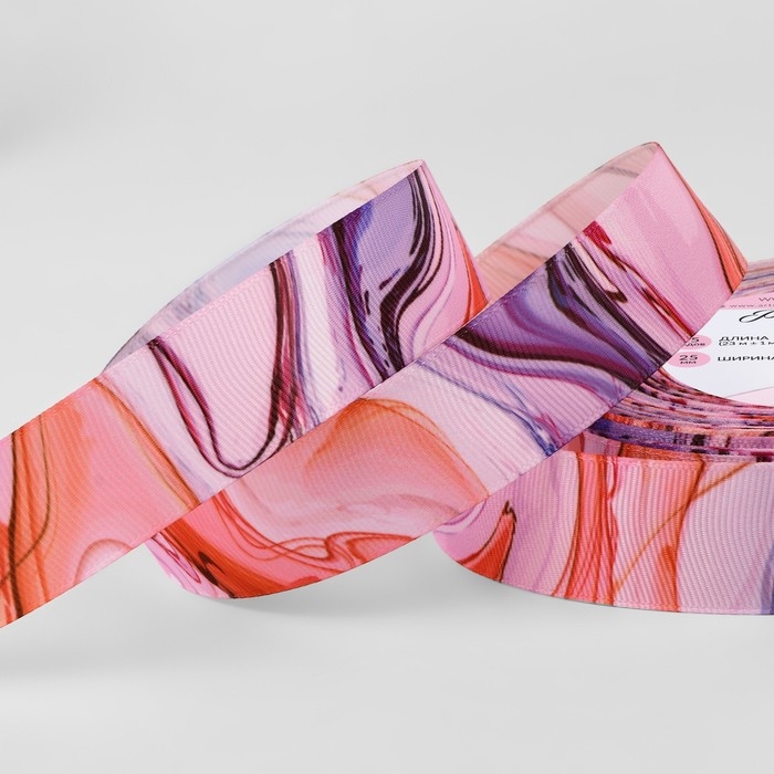 Лента репсовая «Мрамор», 25 мм, 23 ± 1 м, цвет белый/розовый