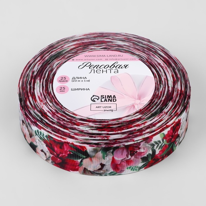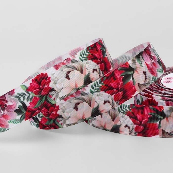 Лента репсовая «Пионы», 25 мм, 23 ± 1 м, разноцветная
