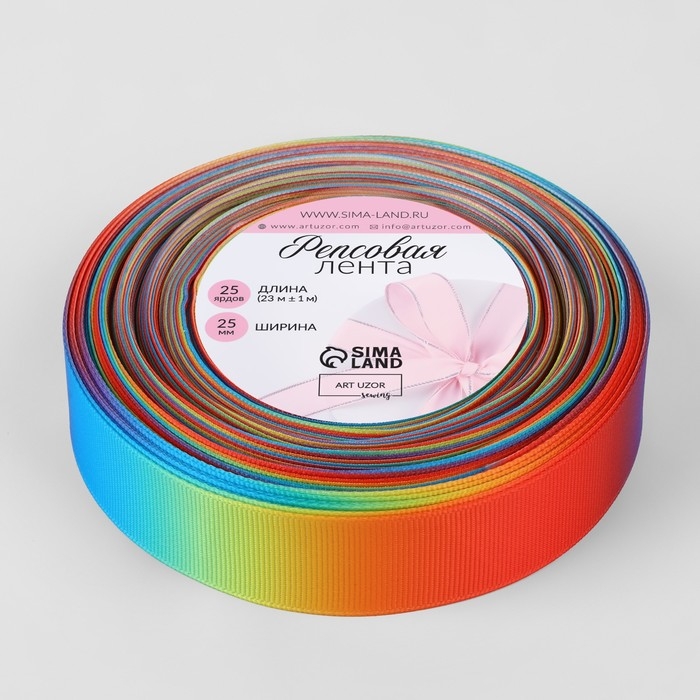 Лента репсовая «Радуга», 25 мм, 23 ± 1 м, разноцветная