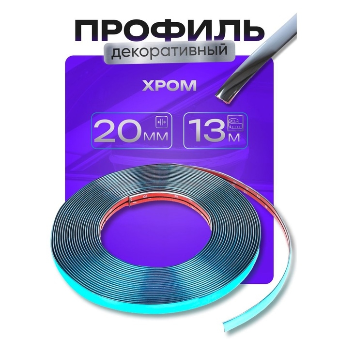 Профиль декоративный гибкий TORSO, хром, 20 мм, рулон 13 м