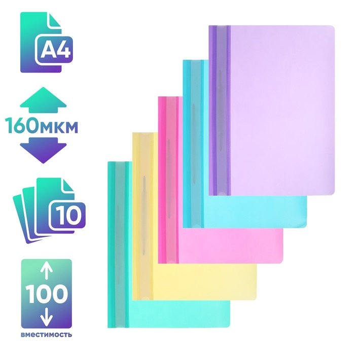 Набор папок-скоросшивателей A4, 160 мкм, Calligrata "Акварель", 10 штук, пастель, МИКС