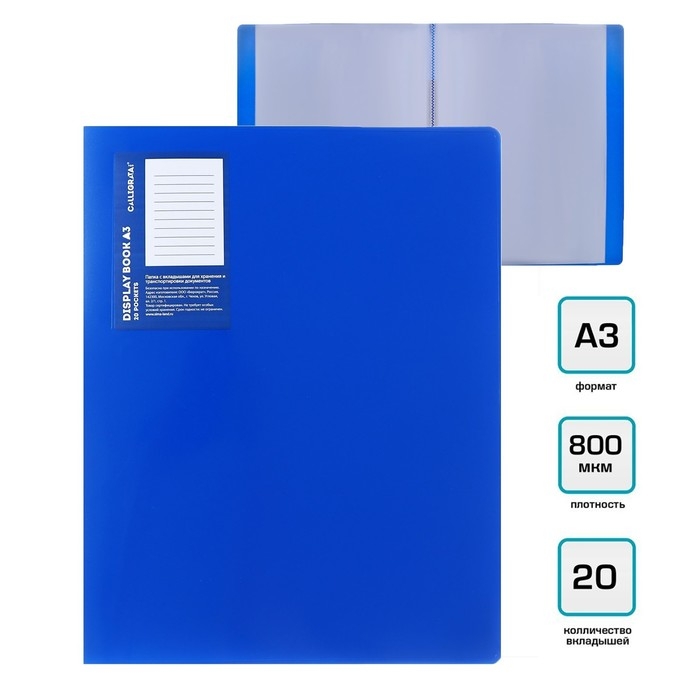 Папка с 20 вкладышами А3, 800 мкм, Calligrata, текстура "песок", синяя