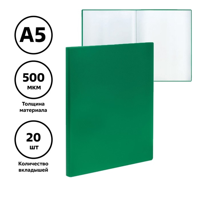 Папка с 20 вкладышами А5, 500 мкм, Calligrata, текстура "песок", зеленая