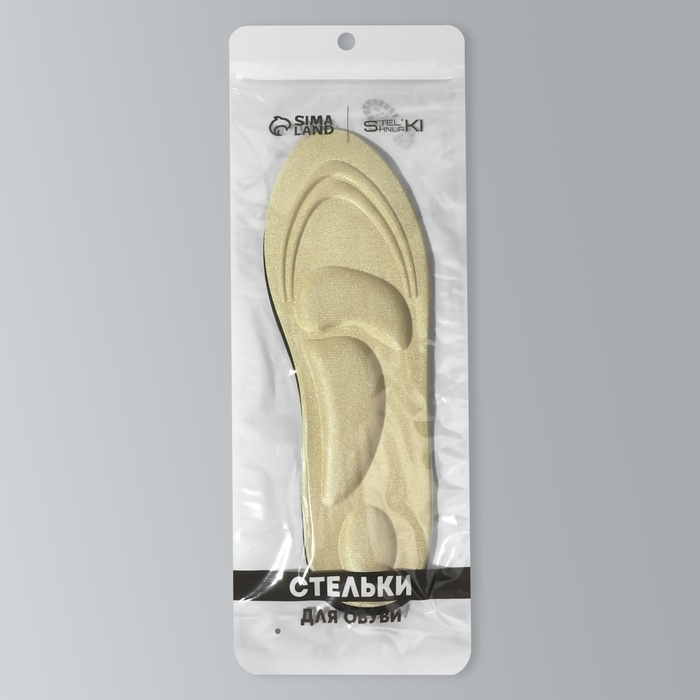Стельки для обуви, универсальные, дышащие, р-р RU до 45 (р-р Пр-ля до 47), 28,5 см, пара, цвет бежевый