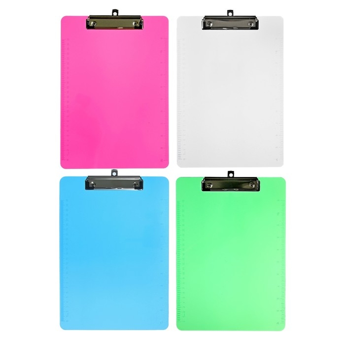 Планшет с прижимом формат А4 пластик, тонированный, с линейкой, МИКС