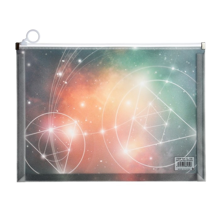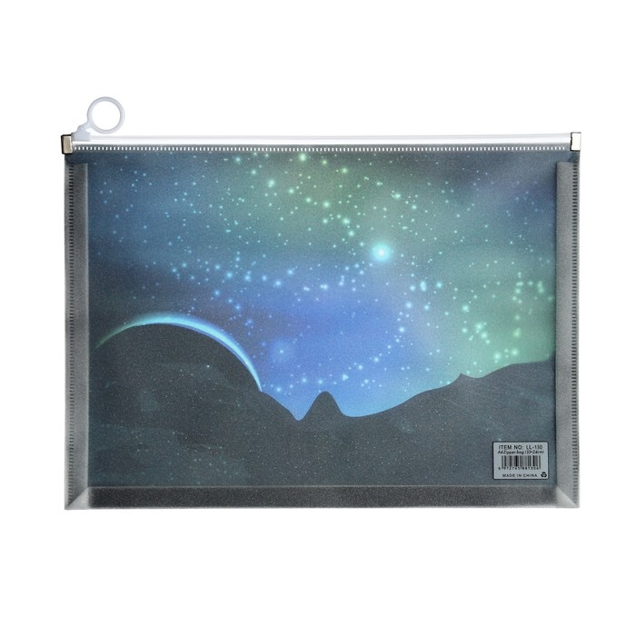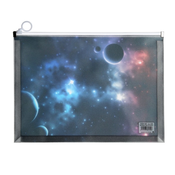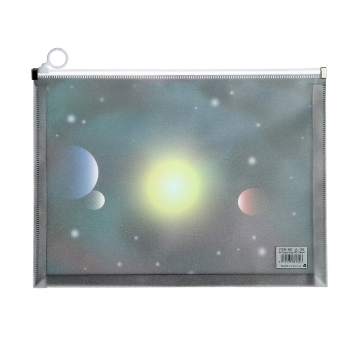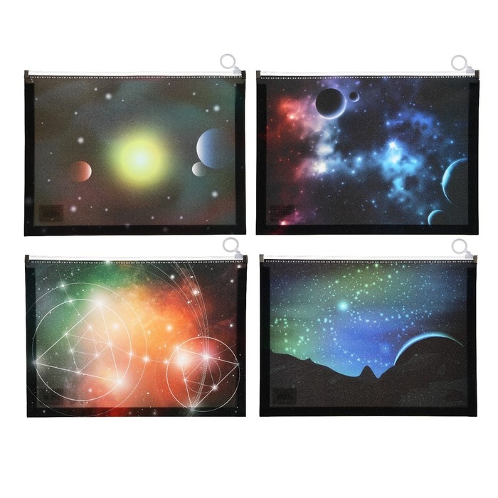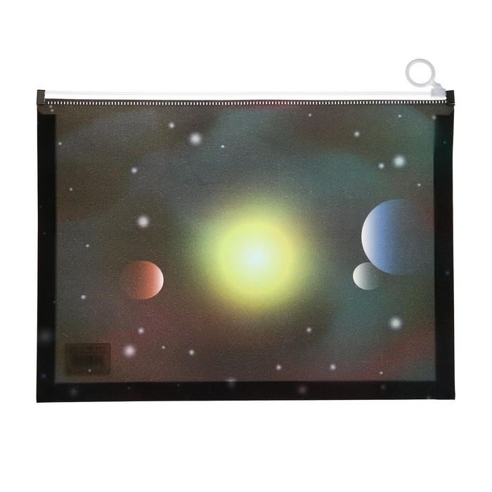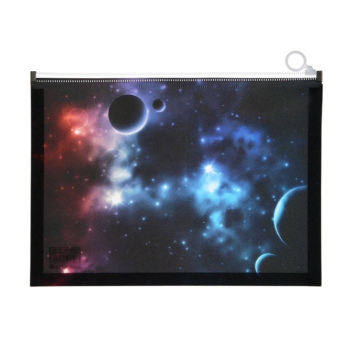 Папка-конверт на молнии формат А4, 180мкр, с рисунком "Космос", МИКС
