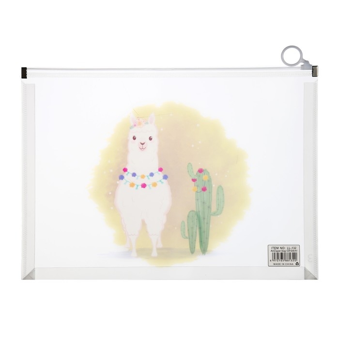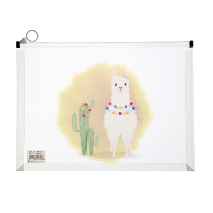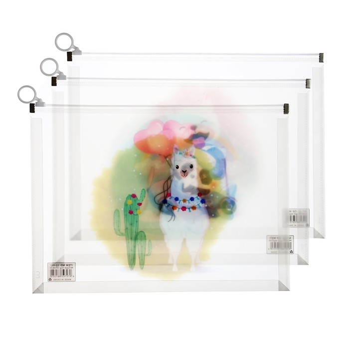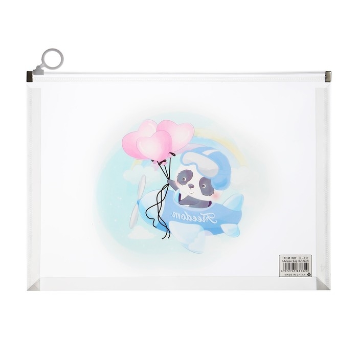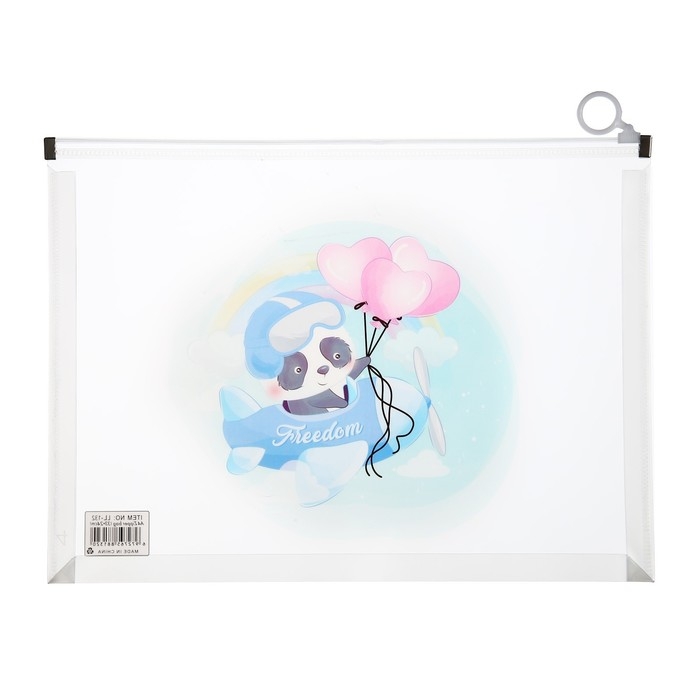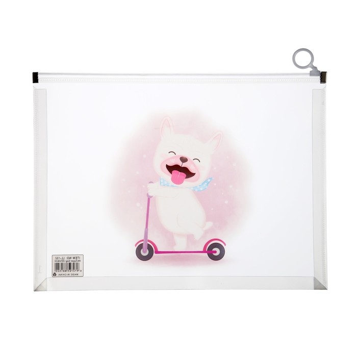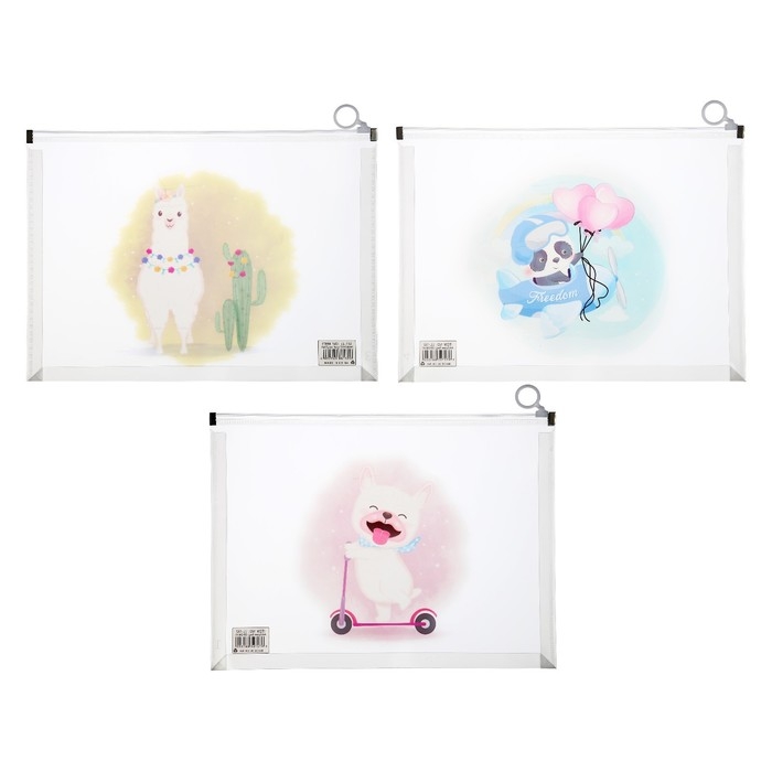 Папка-конверт на молнии формат А4, 180мкр, прозрачная с рисунком "Зверушки", МИКС