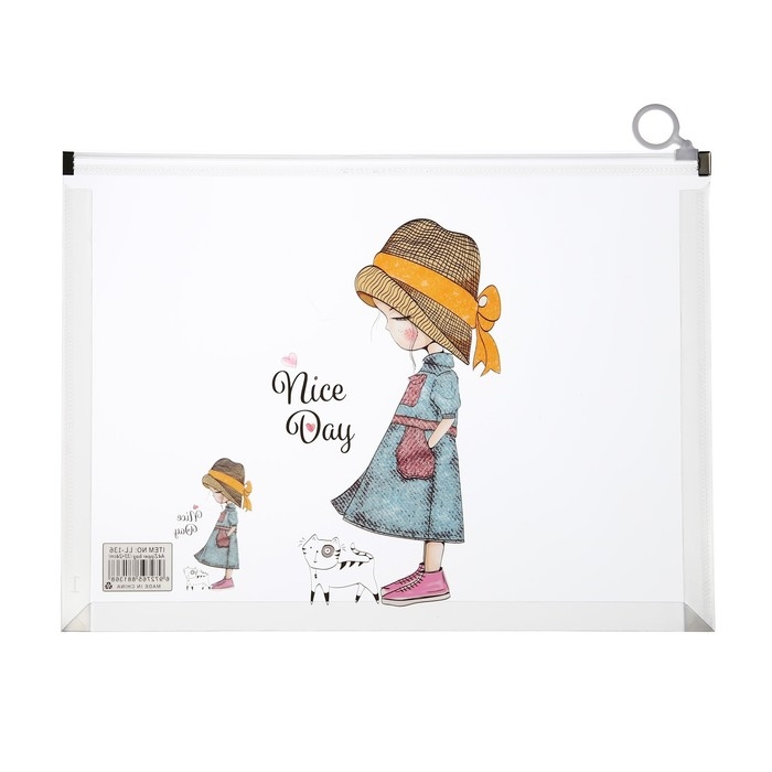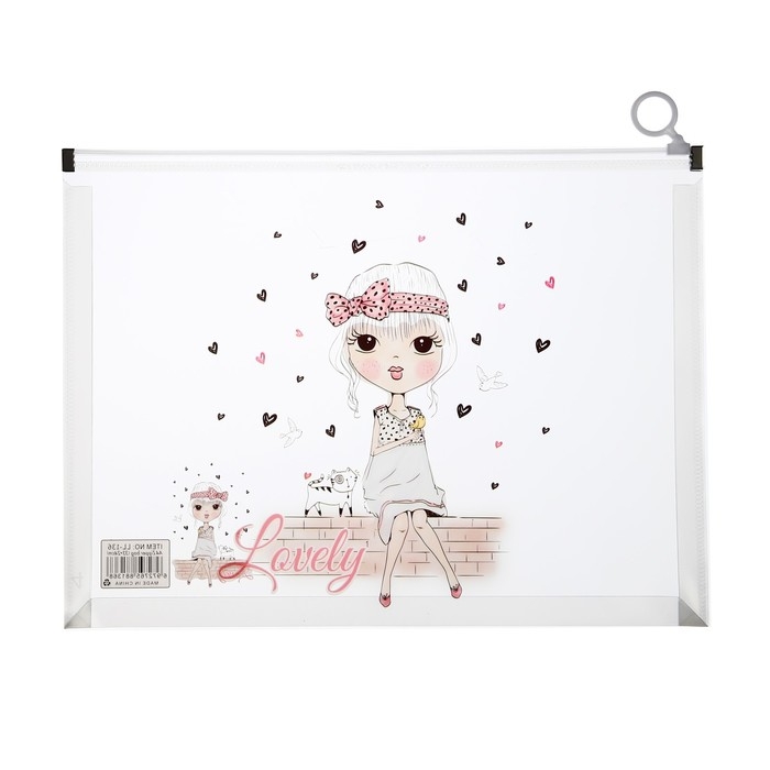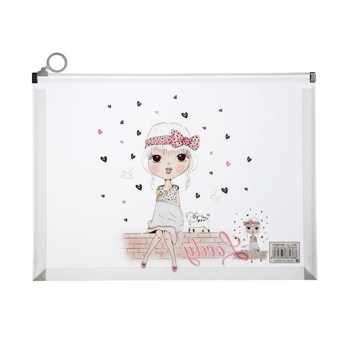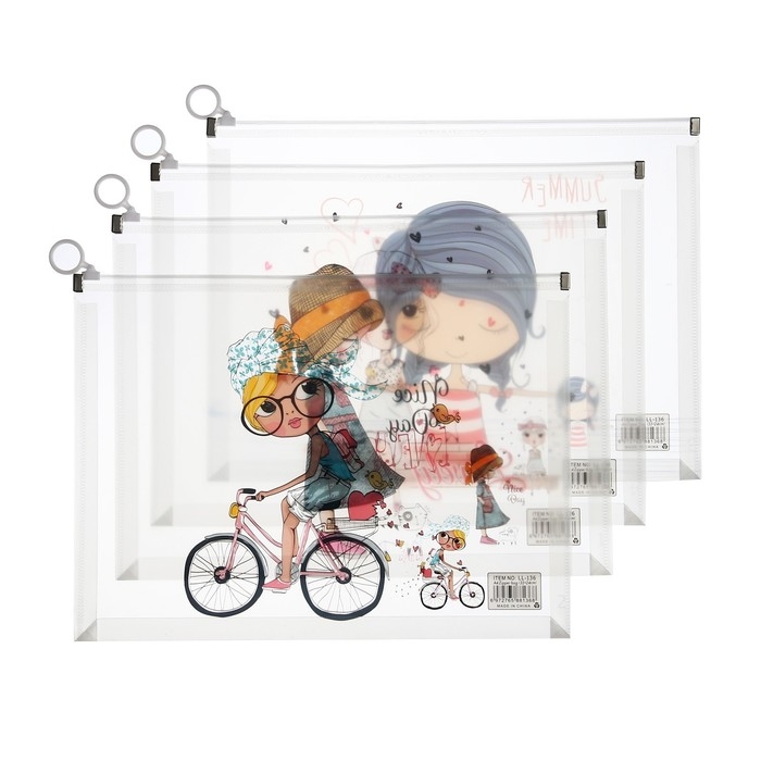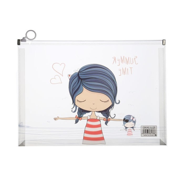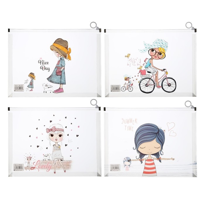 Папка-конверт на молнии формат А4, 180 мкр, прозрачная с рисунком "Девочки", МИКС