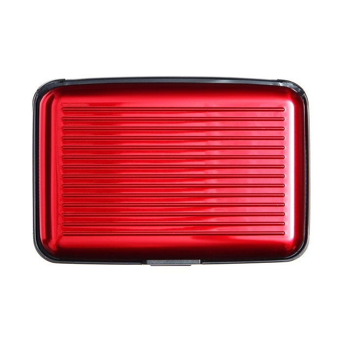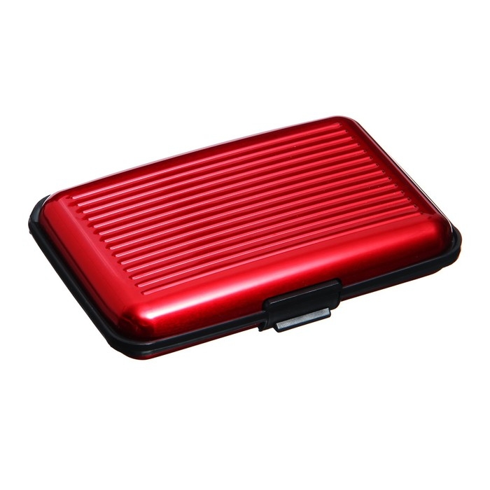 Визитница пластиковая, металлическая, с отделениями внутри, красная