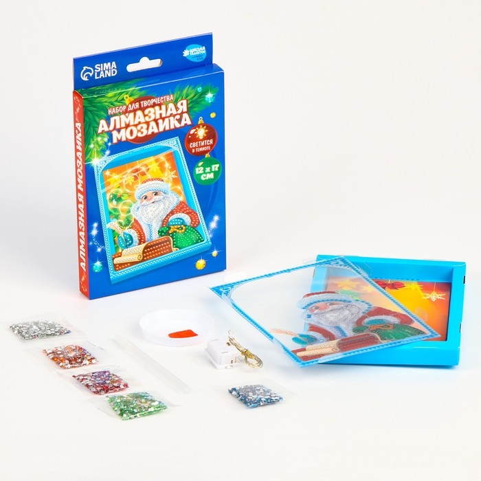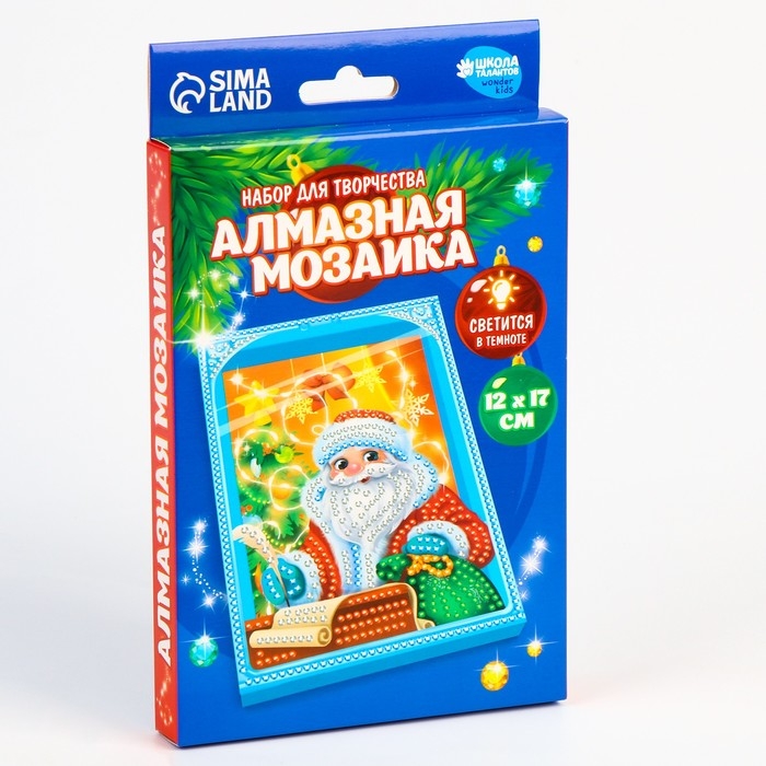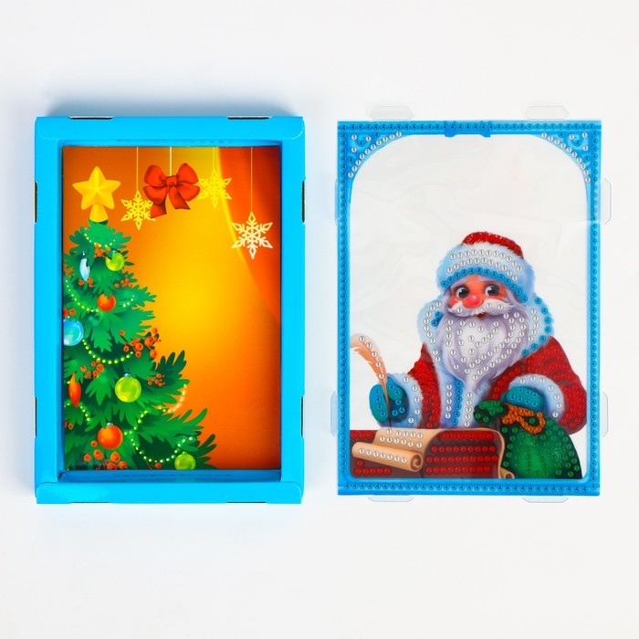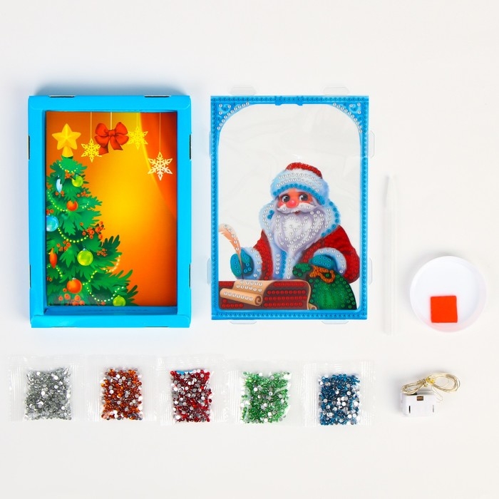 Алмазная мозаика на новый год для детей с частичным заполнением в рамке с гирляндой «Дед Мороз», новогодний набор для творчества