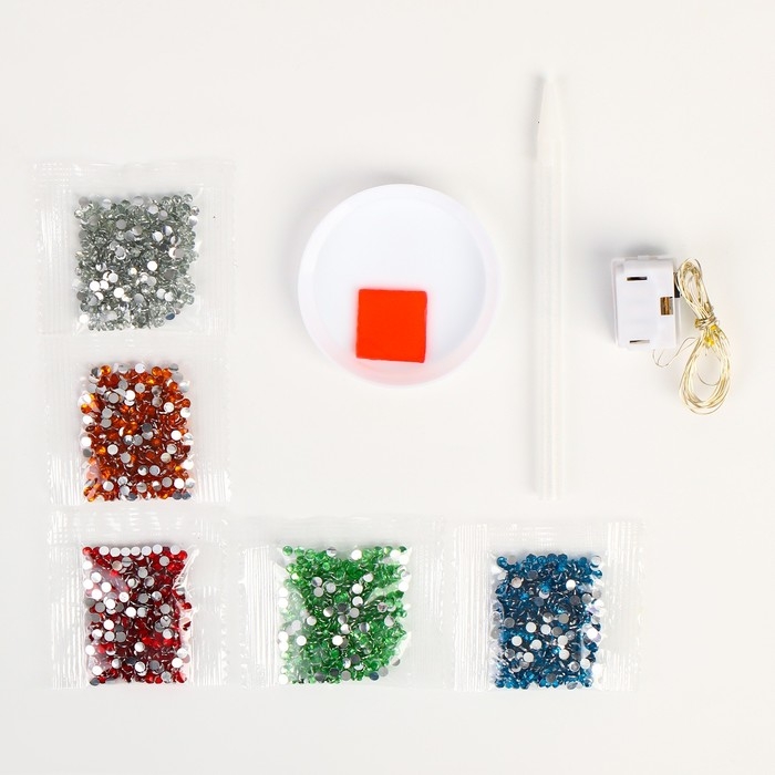 В наборе есть небольшой мольберт: с ним готовое творение можно расположить на полке или столе без дополнительных креплений. В таком интересном оформлении сверкающая картина будет выглядеть как предмет искусства.