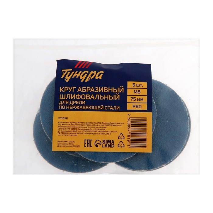 Круг абразивный шлифовальный ТУНДРА, по нержавеющей стали, для дрели, М8, 75 мм, P60, 5 шт. 971819