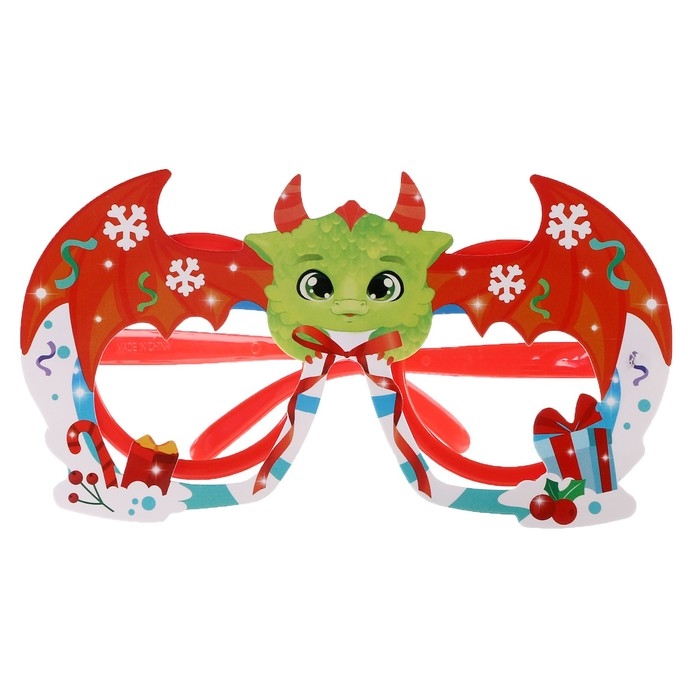 Карнавальные аксессуары - неотъемлемая часть праздничного образа. Эти пластиковые очки с картонными элементами добавят особый шарм и веселье вашему костюму. Яркий дизайн с новогодними мотивами создаст настроение и привлечёт внимание на любом празднике.