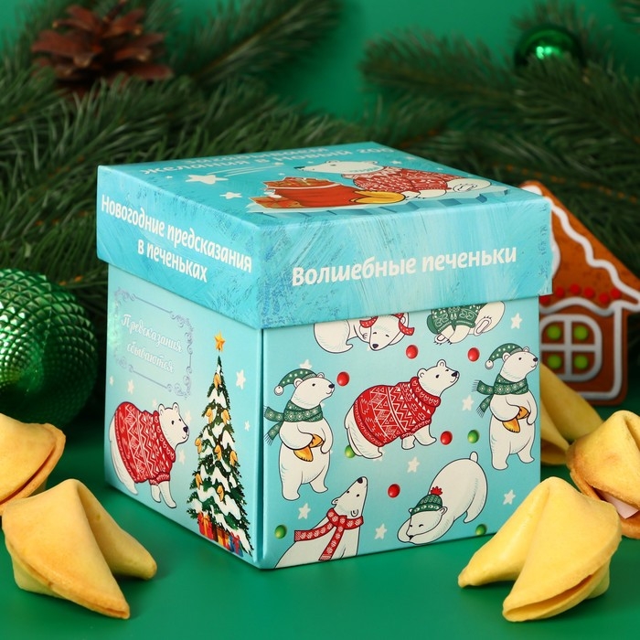 Новый год. Печенье песочное с новогодними молодежными предсказаниями "Белые медведи", 35 г, 5 шт