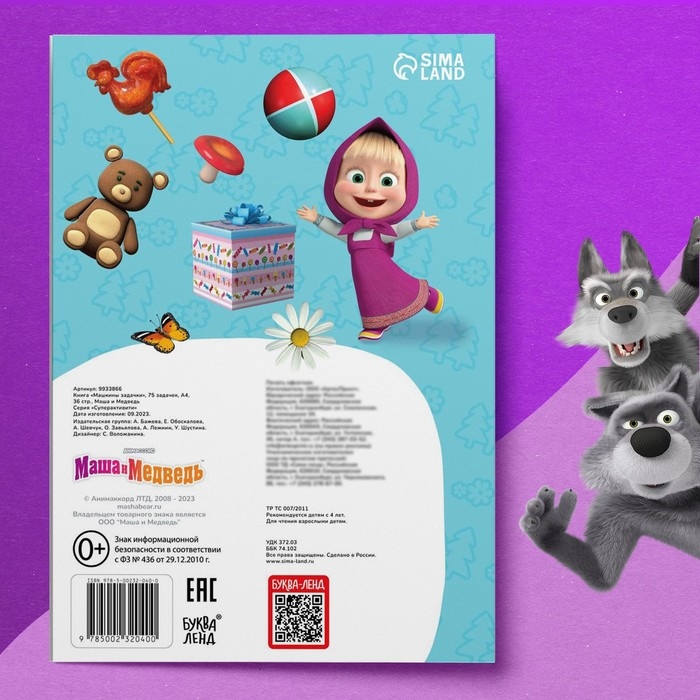 Книга «Машкины задачки», 75 задачек, А4, 36 стр., Маша и Медведь