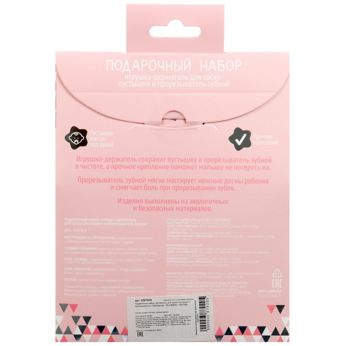 Подарочный набор: Держатель для соски-пустышки и прорезыватель «Принцесса», Mum&Baby