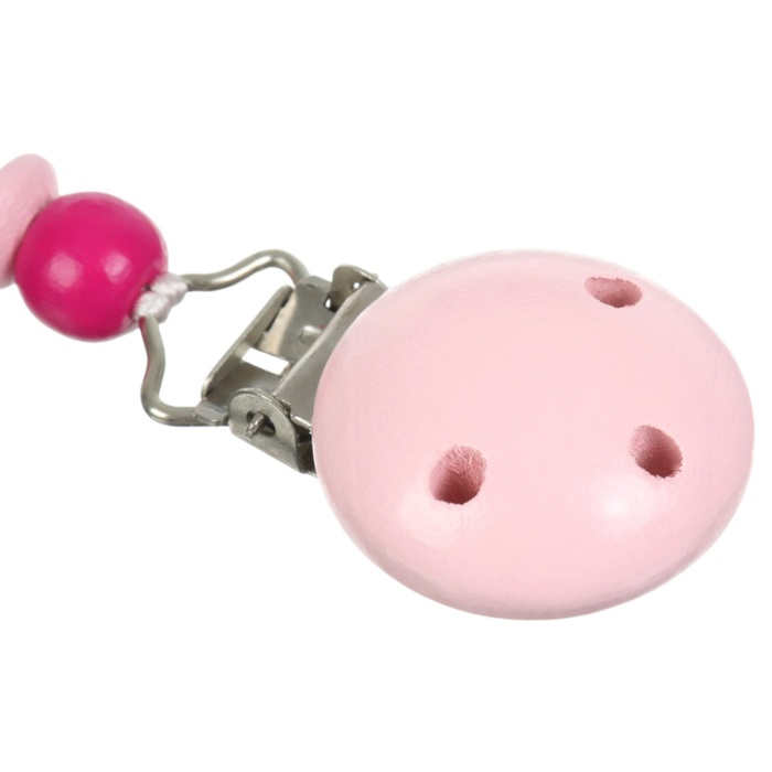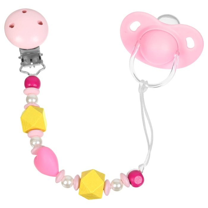 Изделие фиксируется на одежде ребёнка. На конце цепочки есть карабин, который зацепляется за кольцо пустышки. Надёжное крепление убережёт вещь от падения на пол, если малютка случайно выронит её изо рта.