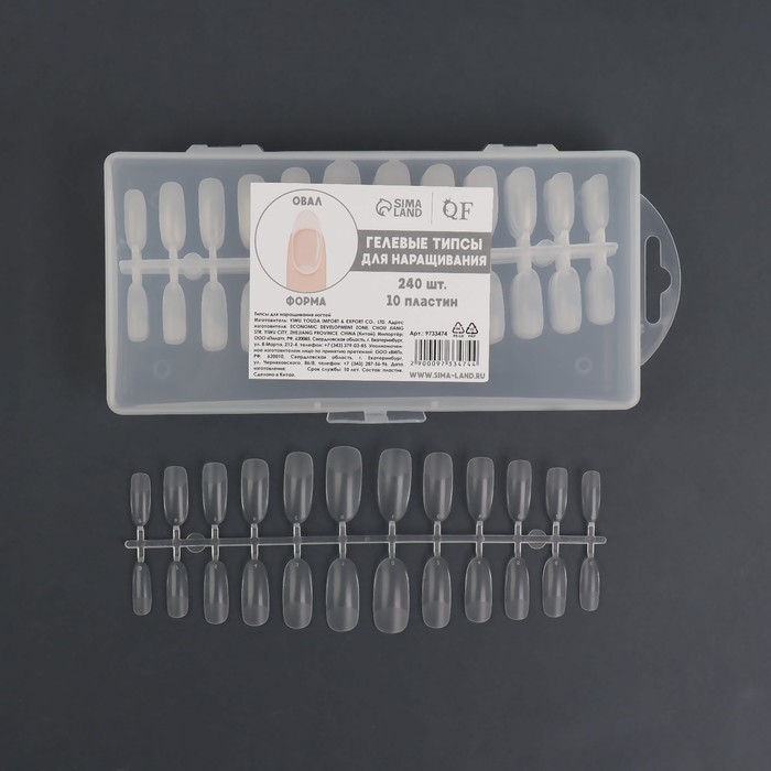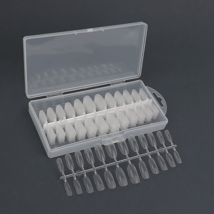 Гелевые типсы для наращивания ногтей, 240 шт, форма овал, полное матовое покрытие, в контейнере, цвет прозрачный