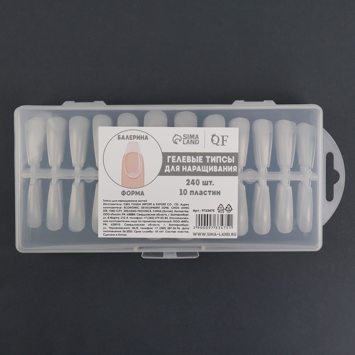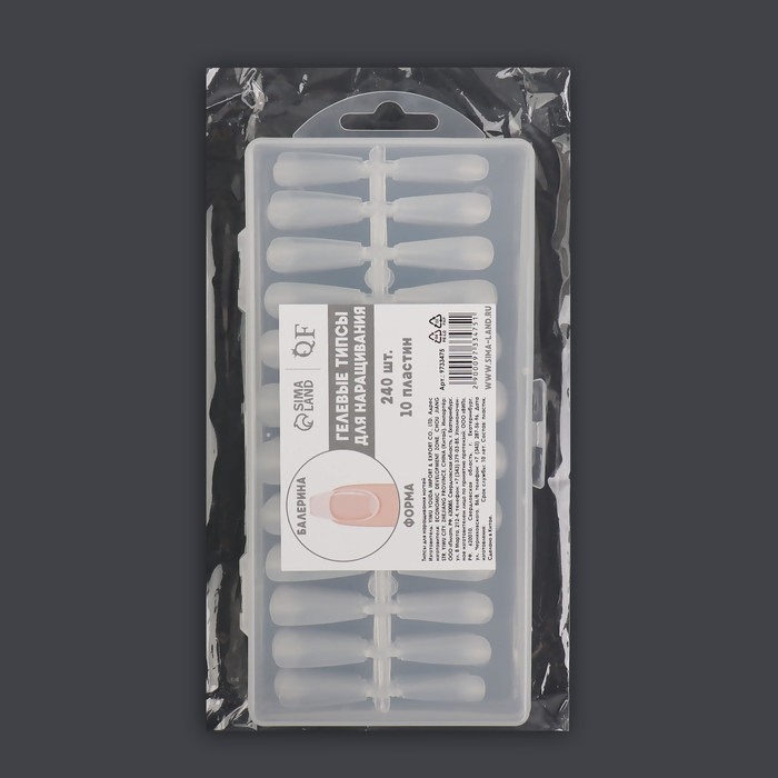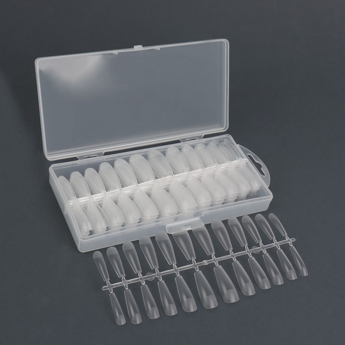 Гелевые типсы для наращивания ногтей, 240 шт, форма балерина, полное матовое покрытие, в контейнере, цвет прозрачный