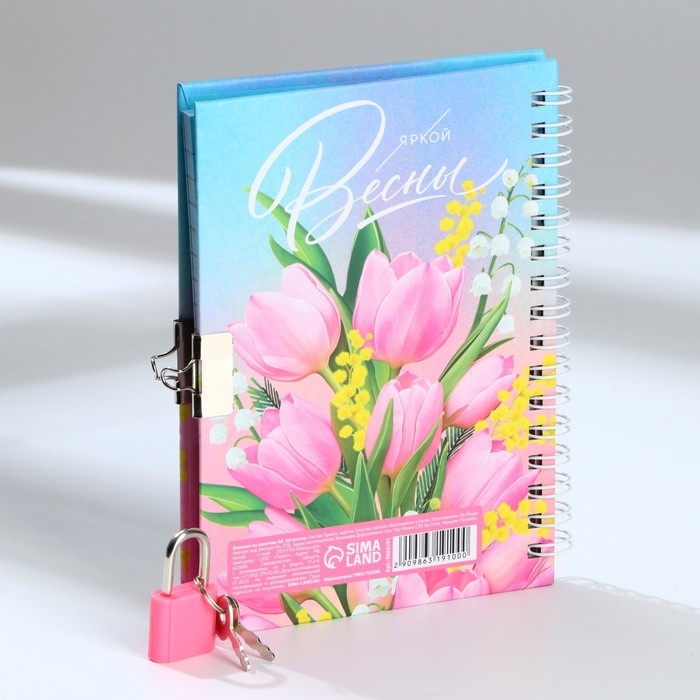 Блокнот на замочке А6, 50 л. «С 8 Марта»