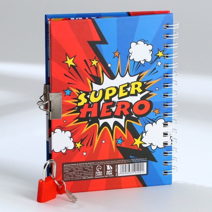 Записная книжка на замочке «Настоящий герой» А6, 50 листов