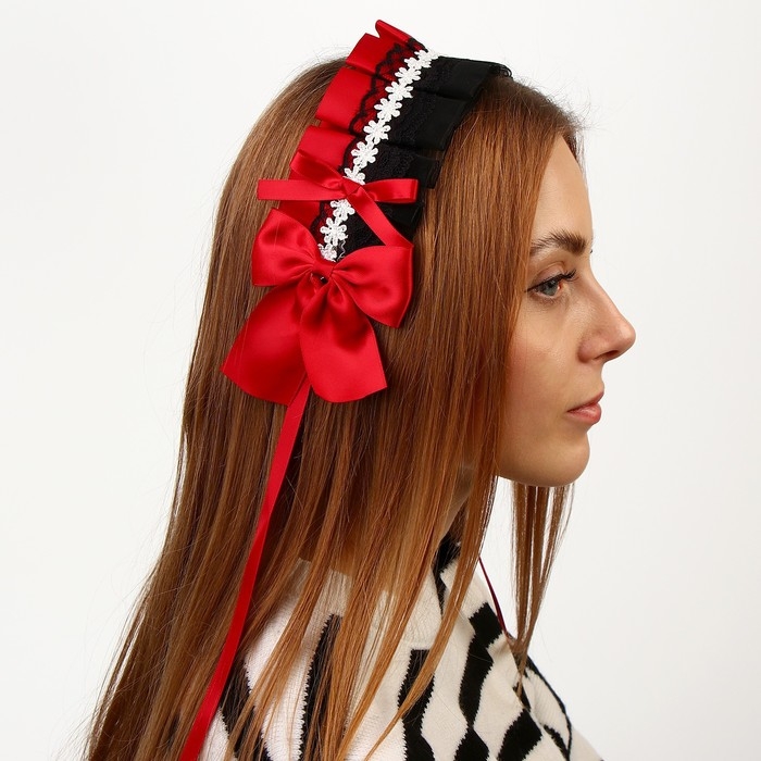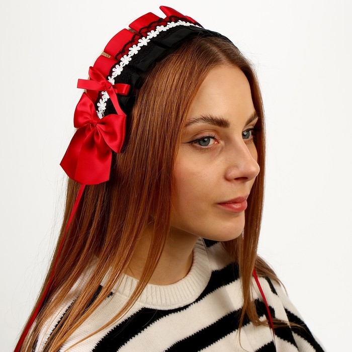 Карнавальная повязка «Лолита», цвет красный с чёрным кружевом