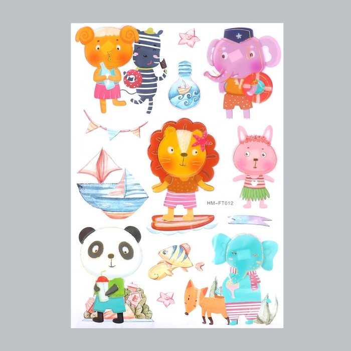 Наклейка пластик многослойная "Зверята на море" 50х35 см