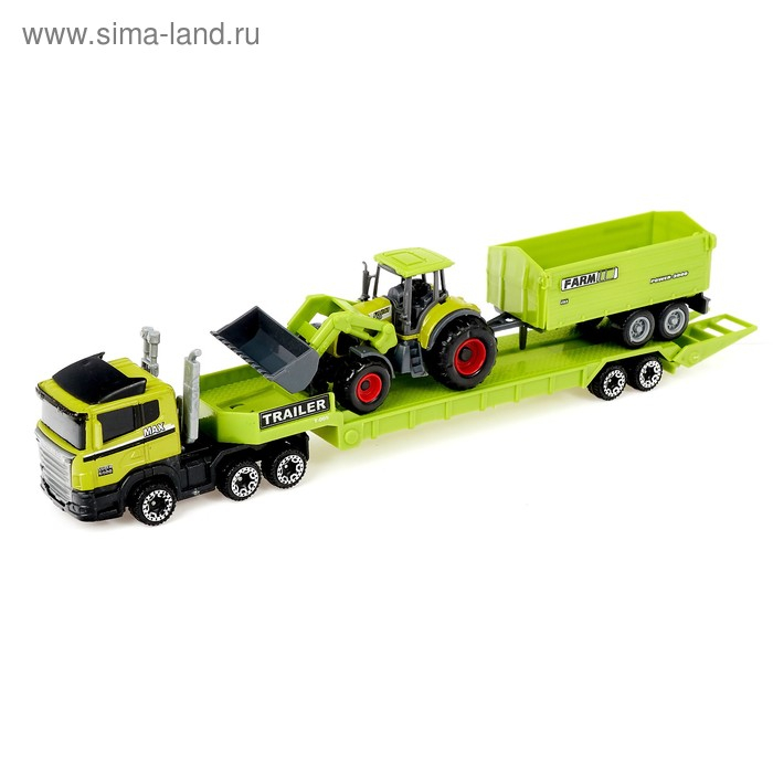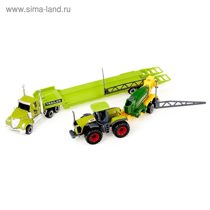 - Трактор с прицепом: 16,5 × 4 × 4 см.