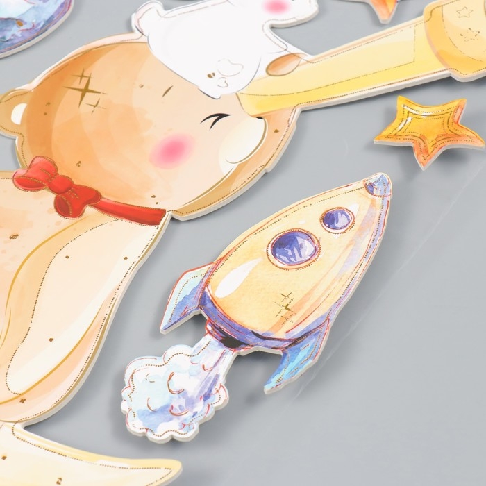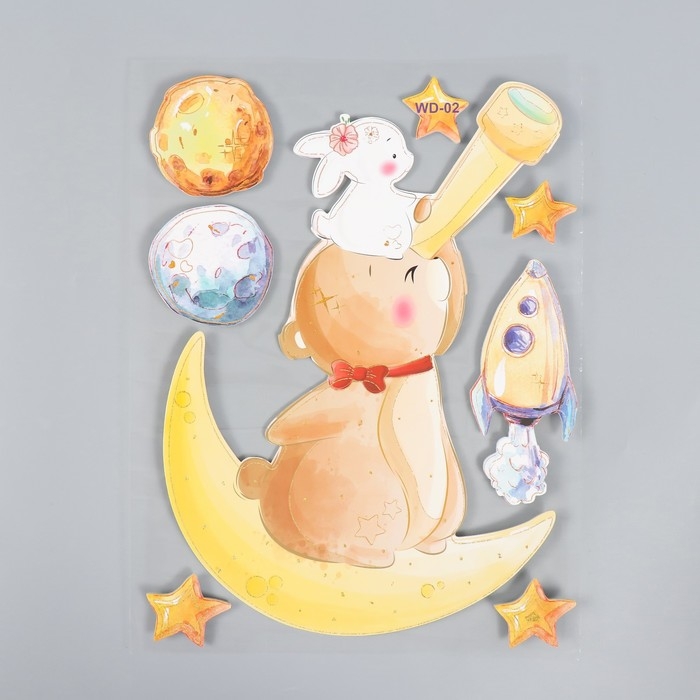 Наклейка EVA интерьерная "Мишка с зайкой на Луне" 41х31,5 см