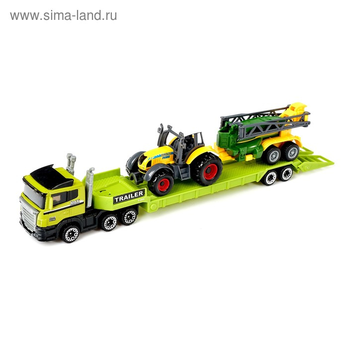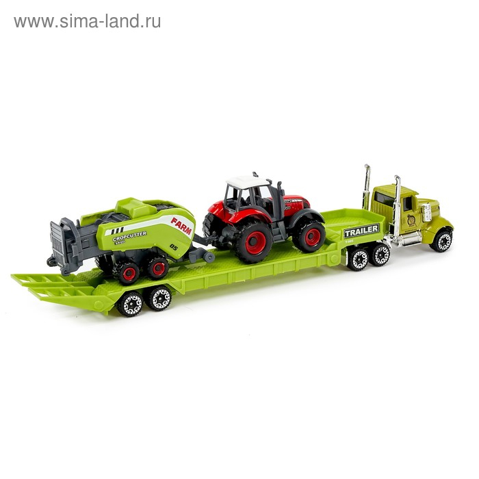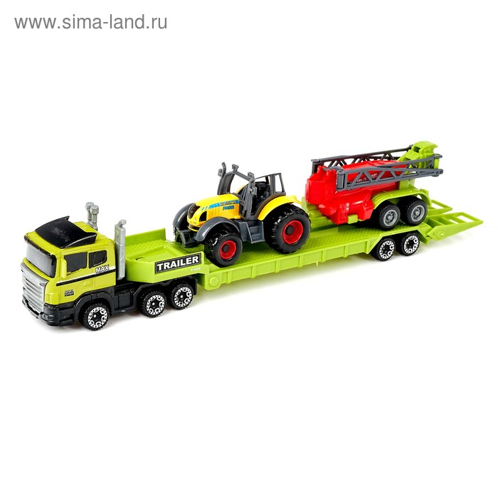 Пора открывать сезон сбора урожая — скорее отправляйте технику в поле! Легко переправить спецтранспорт поможет автовоз. Мальчишке понравится оригинальный дизайн и подвижные элементы техники.