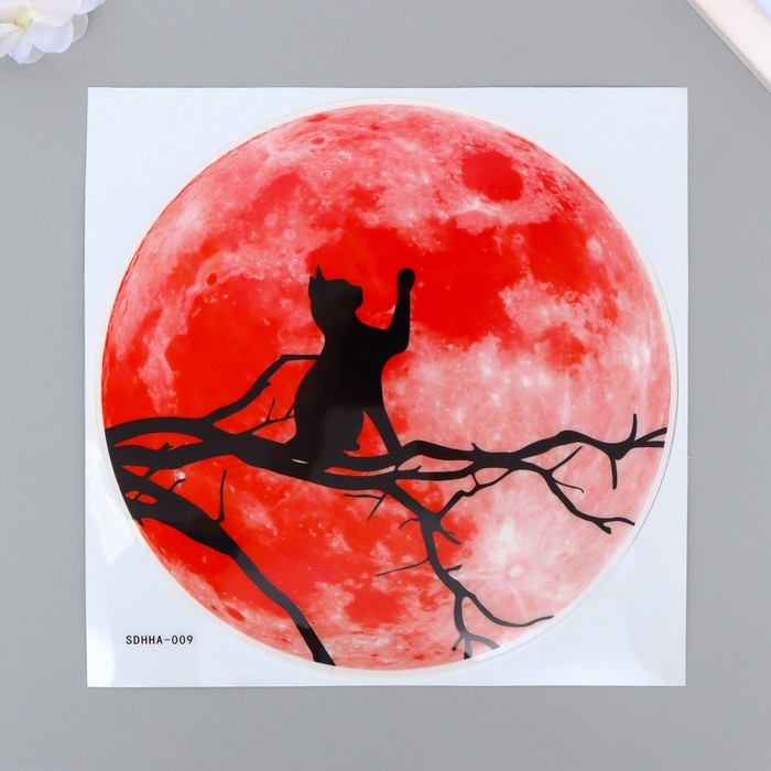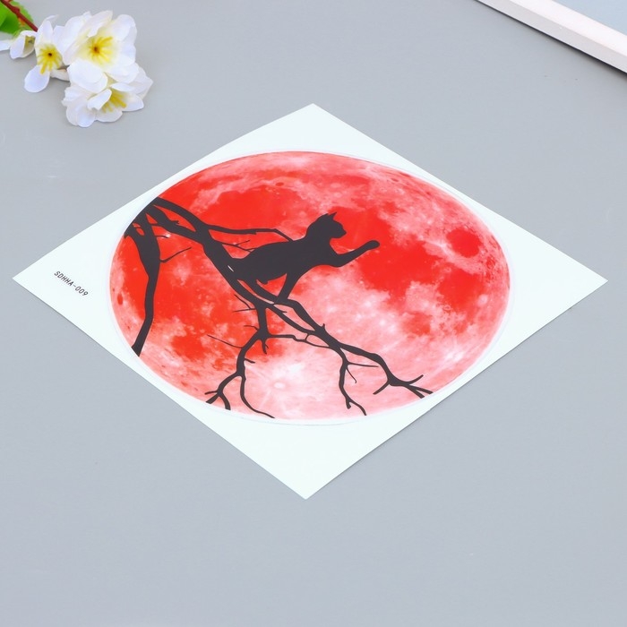 Наклейка пластик интерьерная фосфорная "Кошка на ветке на фоне луны" 20х20,5 см