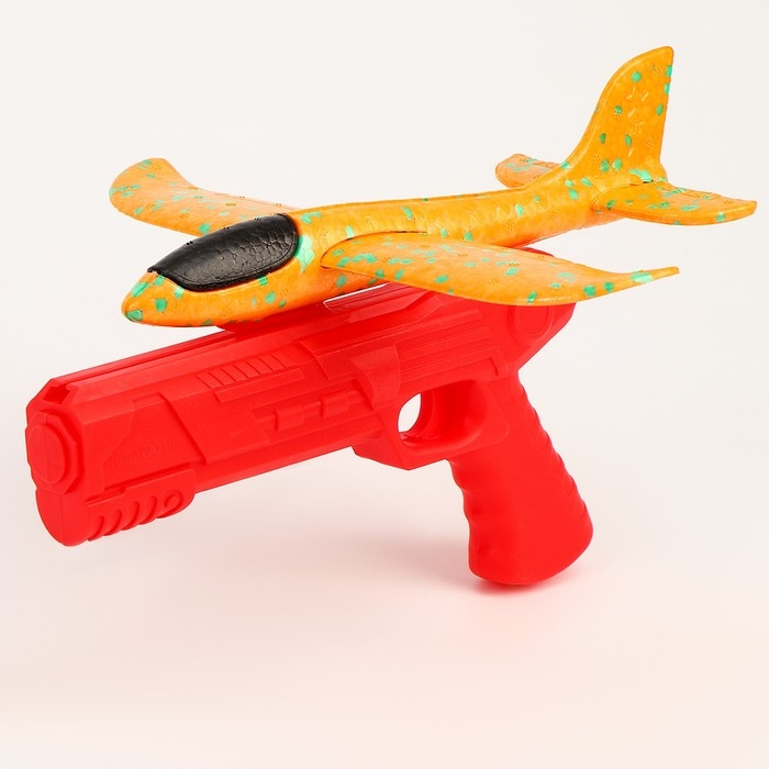 Самолёт с пистолетом-катапультой станет отличным подарком для мальчиков и девочек! Благодаря катапульте самолёт легко запустить на большое расстояние: просто вставьте самолёт в катапульту, прицельтесь и нажмите на курок — самолёт полетит далеко!