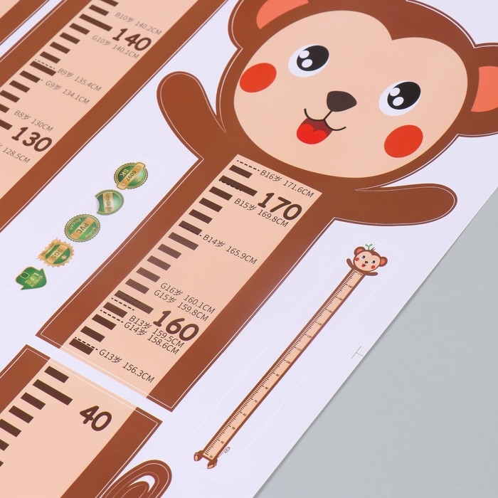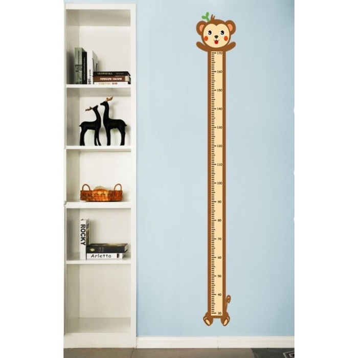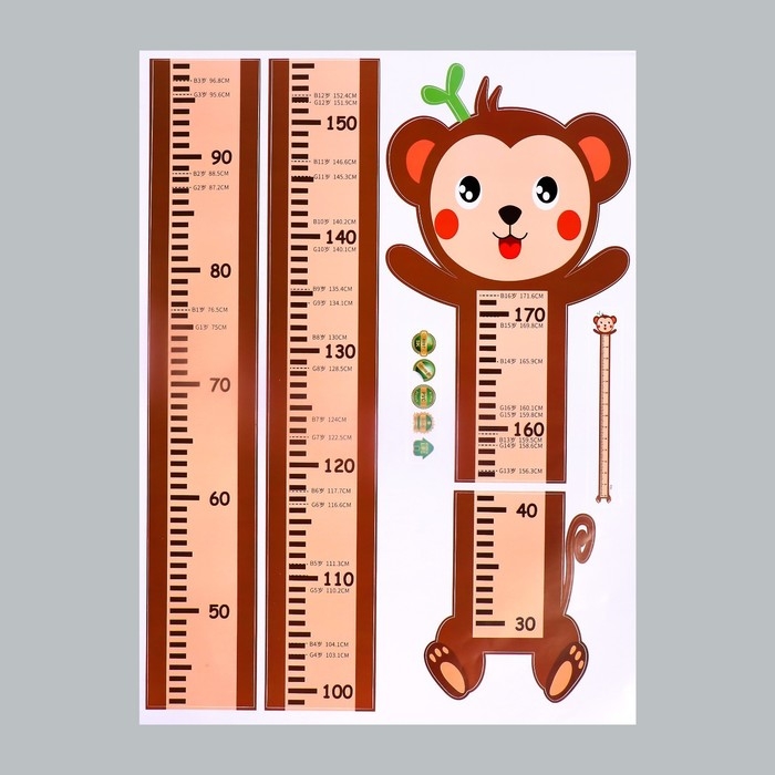Наклейка пластик интерьерная цветная ростомер "Обезьянка" 45x60 см