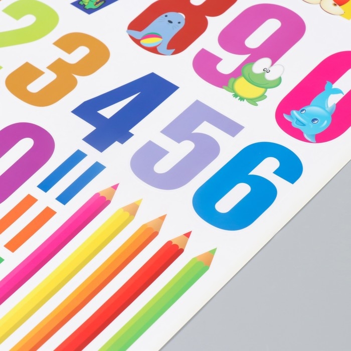 Наклейка пластик интерьерная цветная ростомер "Весёлые задачки" 50x70 см