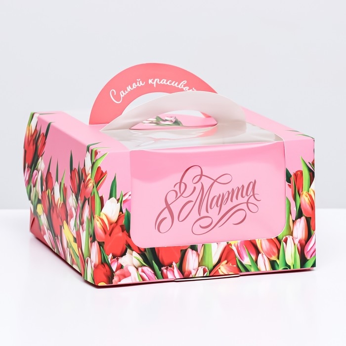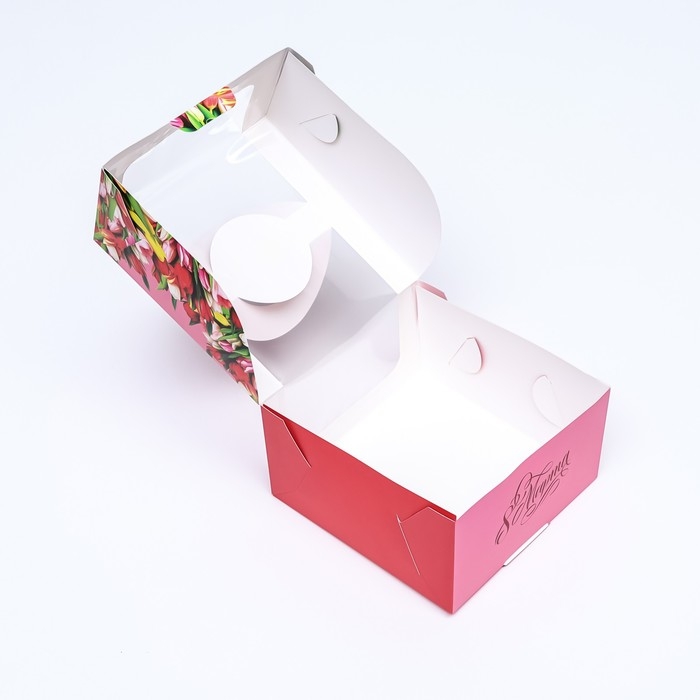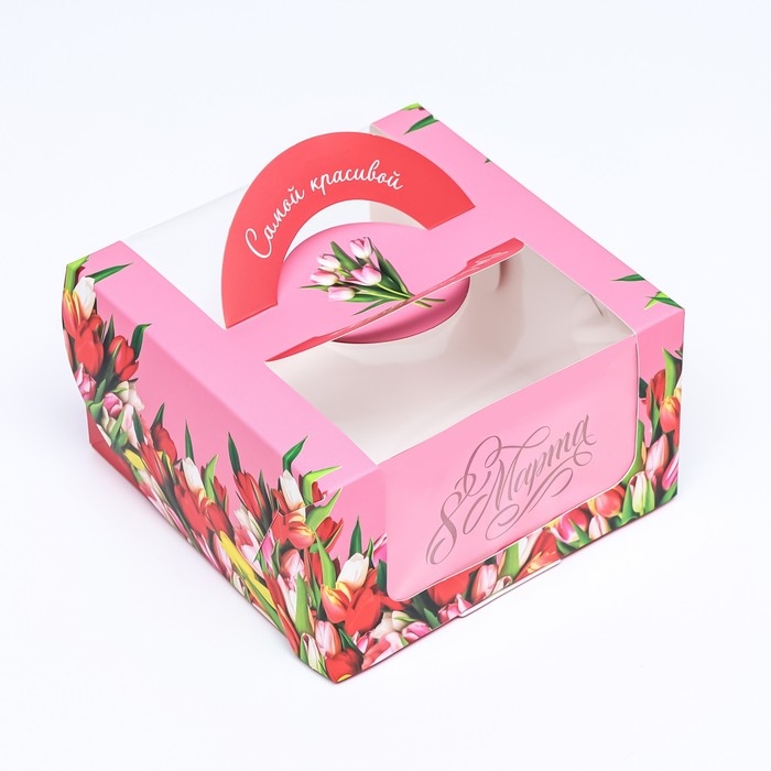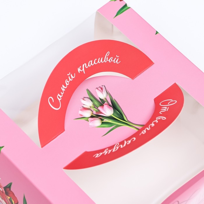 Коробка под бенто-торт с окном "От всего сердца тюльпаны", 14 х 14 х 8 см