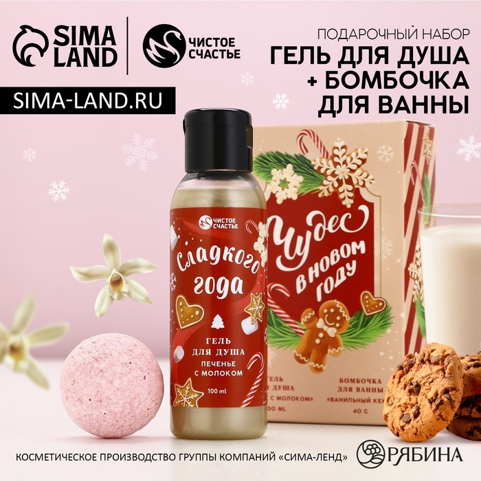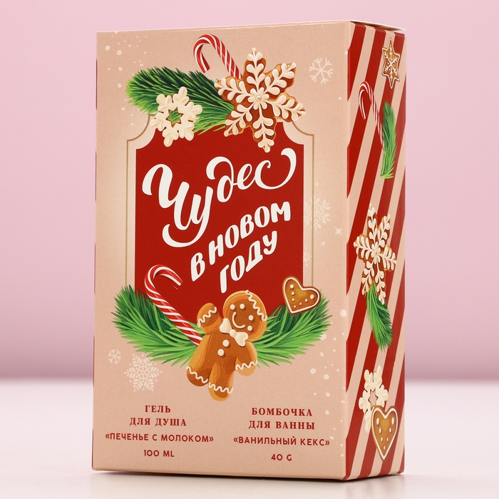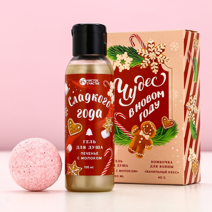 Подарочный набор косметики «Чудес в Новом Году!», гель для душа 100 мл и бомбочка для ванны 40 г, ЧИСТОЕ СЧАСТЬЕ