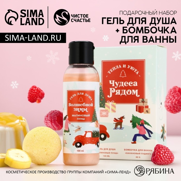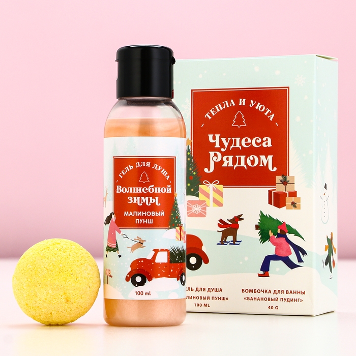 Подарочный набор косметики «Чудеса рядом», гель для душа 100 мл и бомбочка для ванны 40 г, Новый Год