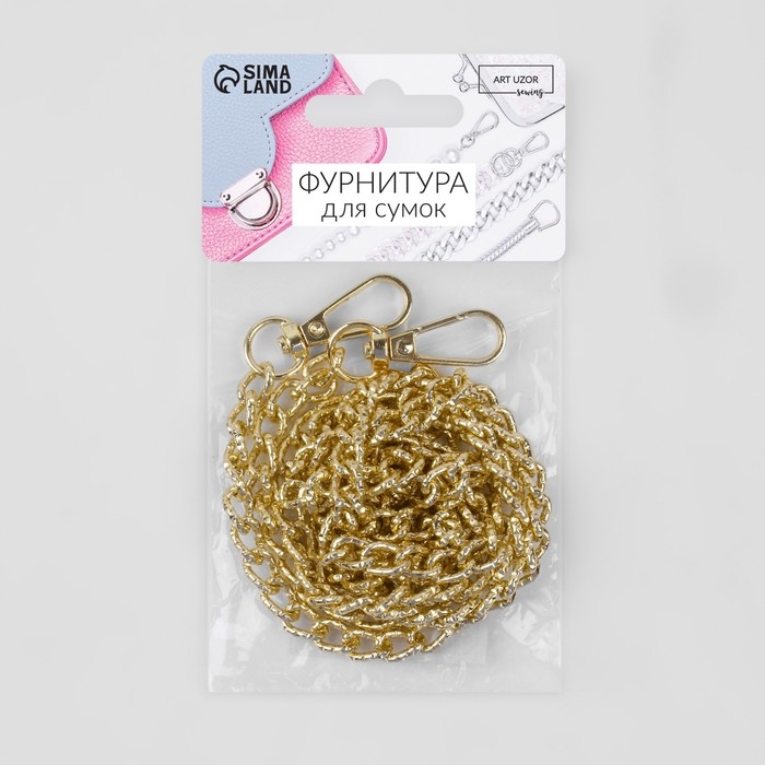 Цепочка для сумки, с карабинами, алюминиевая, 7 × 10 мм, 120 см, огранённая, цвет золотой