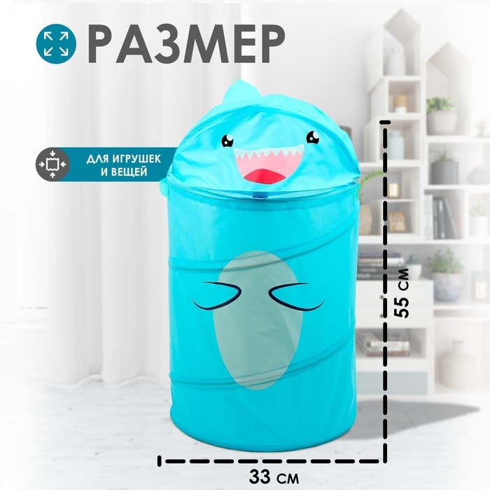 Корзина для хранения игрушек «Акула» с ручками и крышкой, 55 х 33 х 33 см, голубая