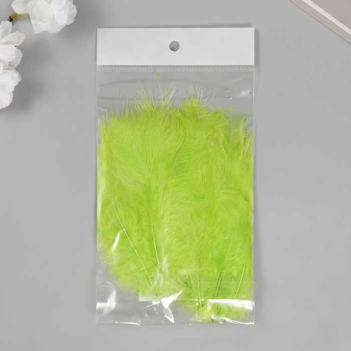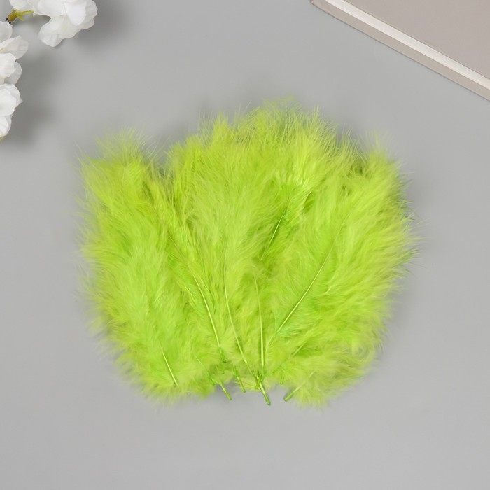 Перо декоративное гусиное пуховое "Ярко-зелёное" набор 40 шт h=10-15 см