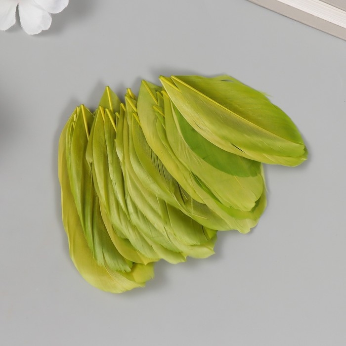 Перо декоративное гусиное "Зелёное" в форме листа набор 40 шт h=5-7 см