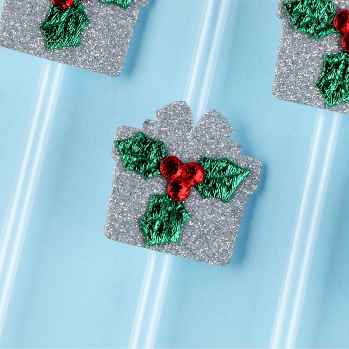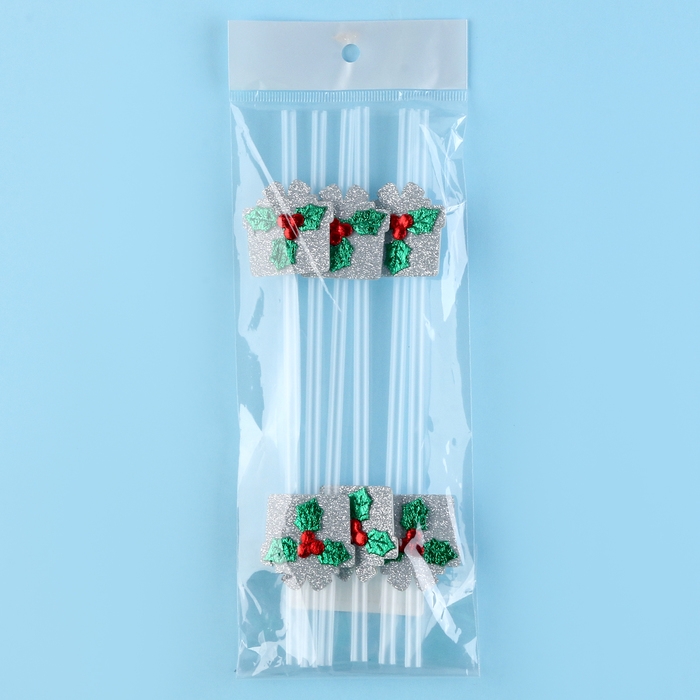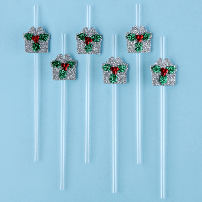 Новый год! Трубочка-подарок «Ягодка», серебро, набор 6 шт.