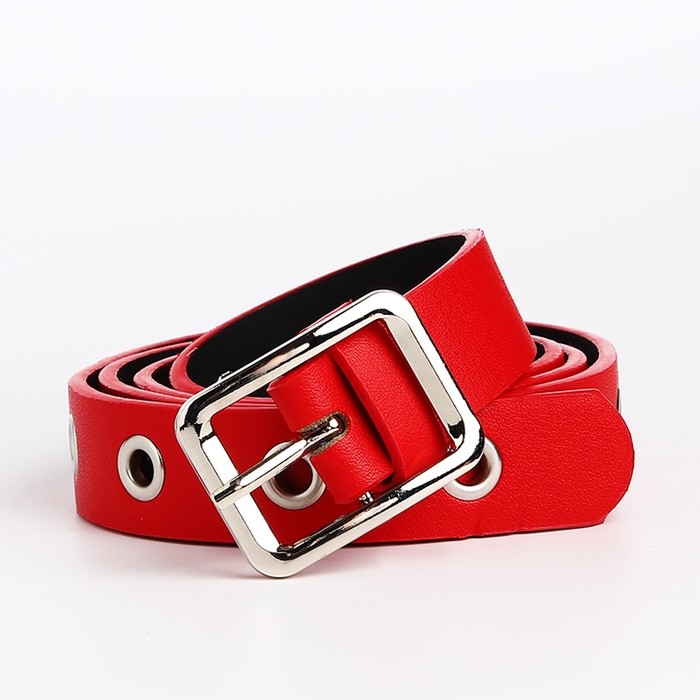 Ремень женский, ширина 2.5 см, люверсы, пряжка металл, цвет красный