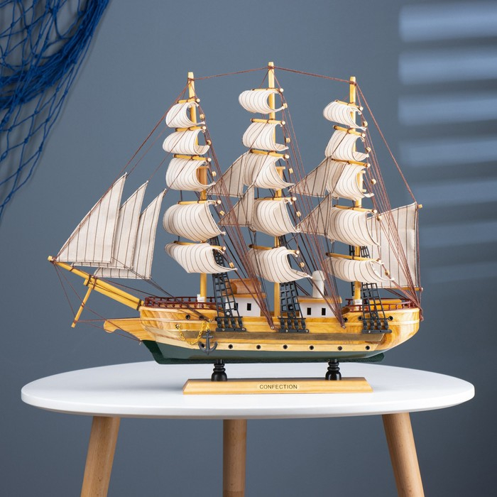 Корабль сувенирный средний «Виксен», борта светлое дерево, паруса микс, 42х49х10 см
