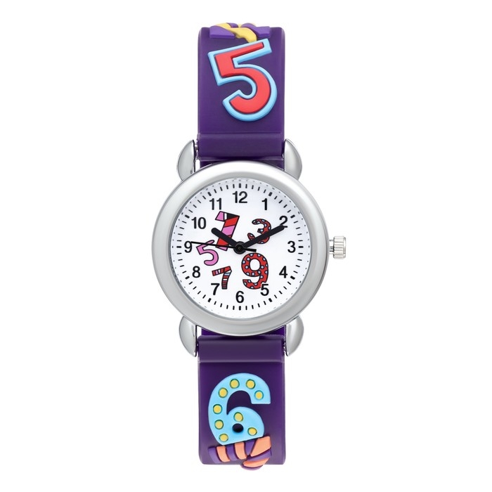Часы наручные детские, "Цифры", d-2 см, ремешок силикон l-20 см, фиолетовые