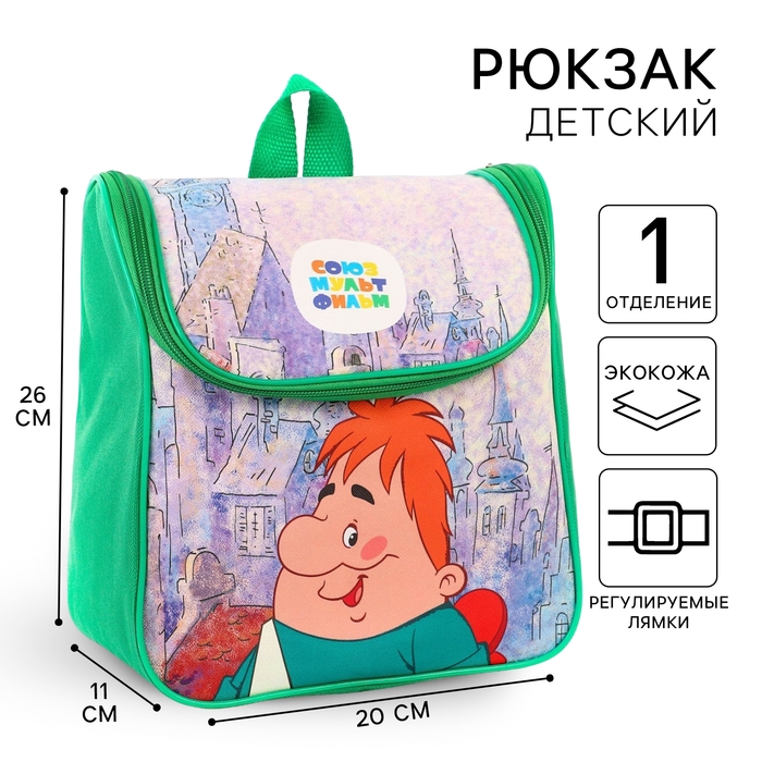 Рюкзак детский на молнии сверху, Текстиль, 20 см х 11 см х 26 см "Малыш и Карлсон", Союзмультфильм